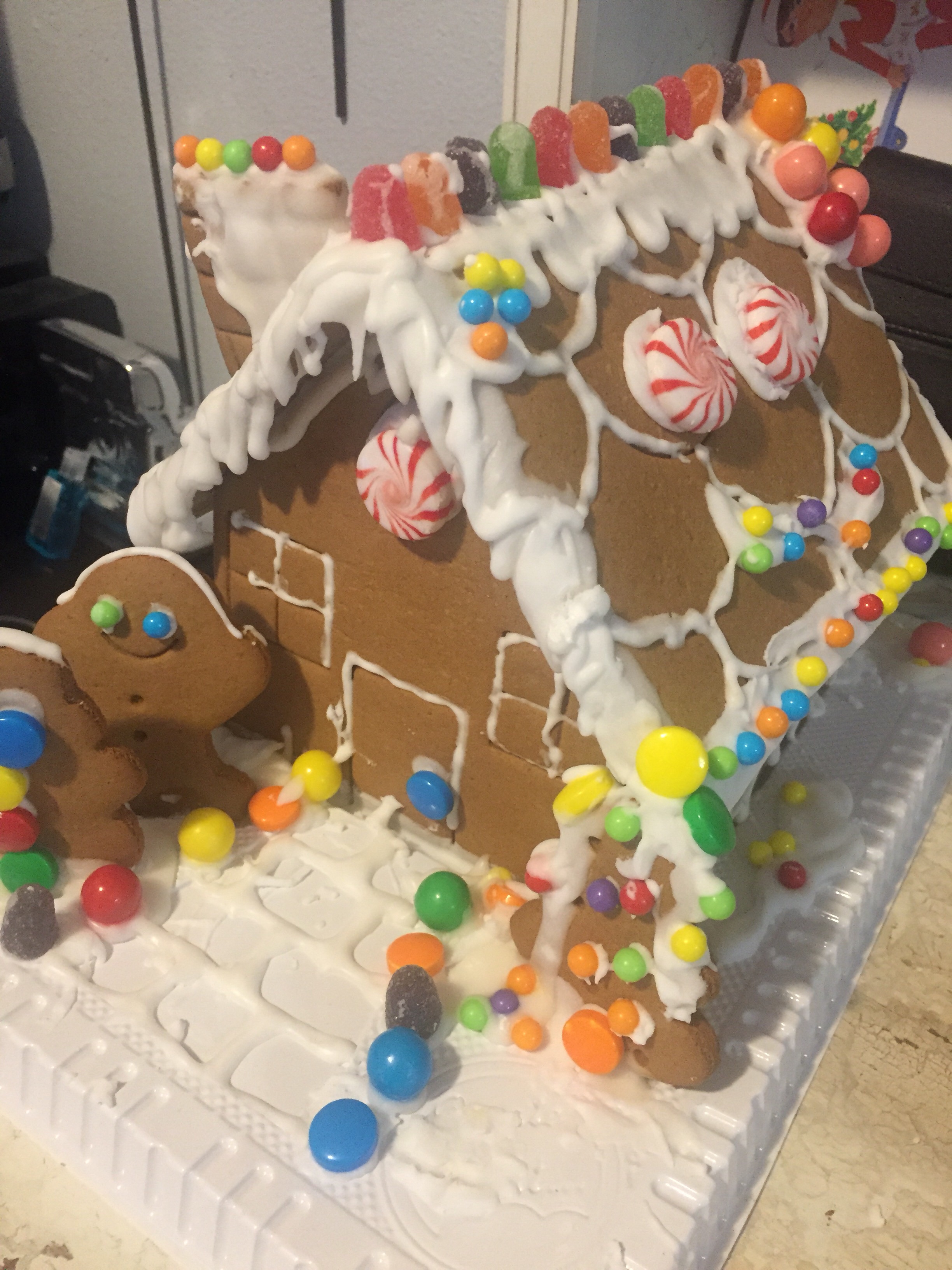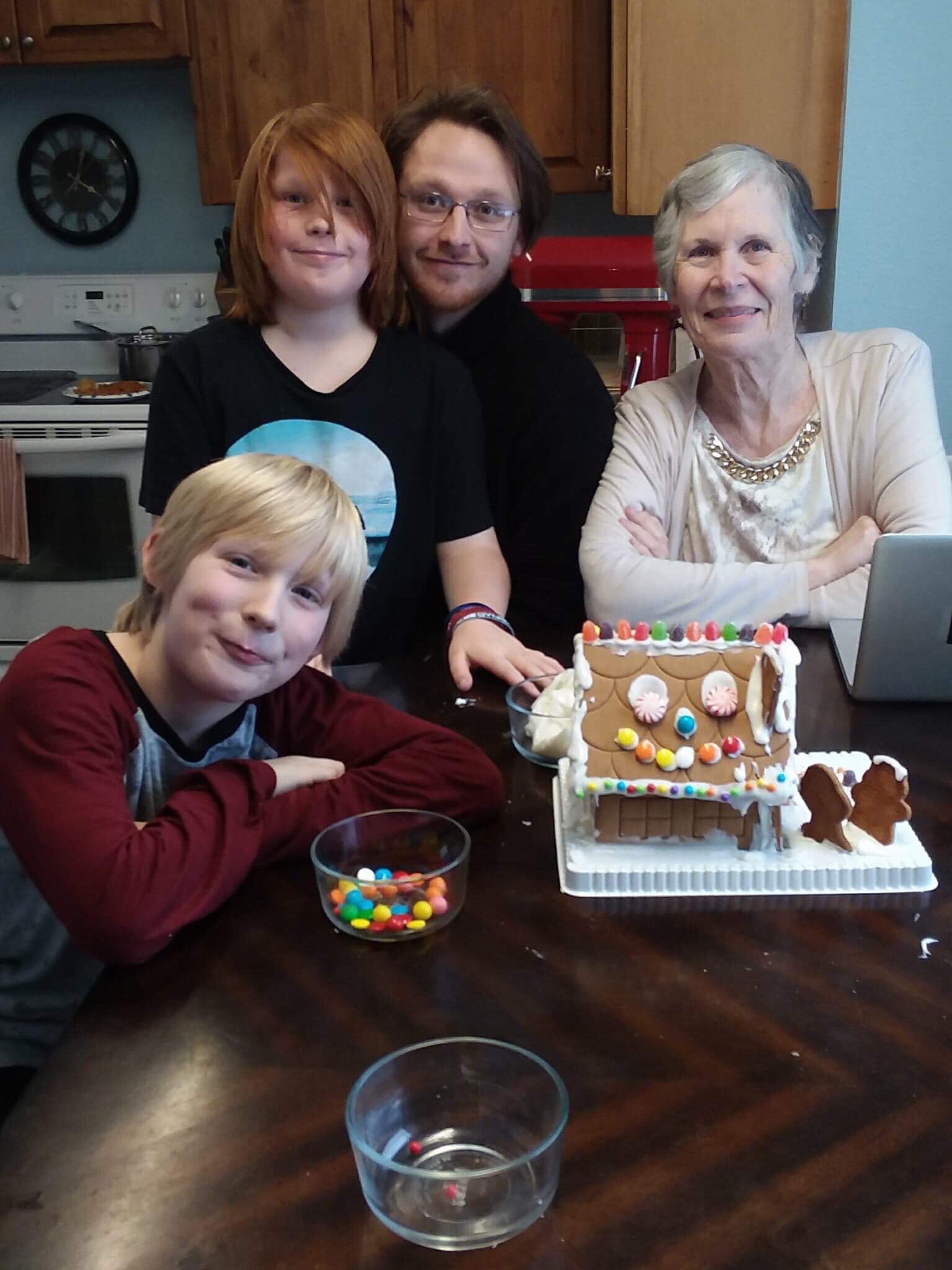It’s been an exciting and busy holiday weekend. Lots of visitors. David came up on Saturday afternoon for a whole week, we played games, put together a 500 piece puzzle, which confused mom greatly. Drove around town to see Christmas lights and through Freeman park. Put together a gingerbread house and baked lots of cookies for friends and neighbors.