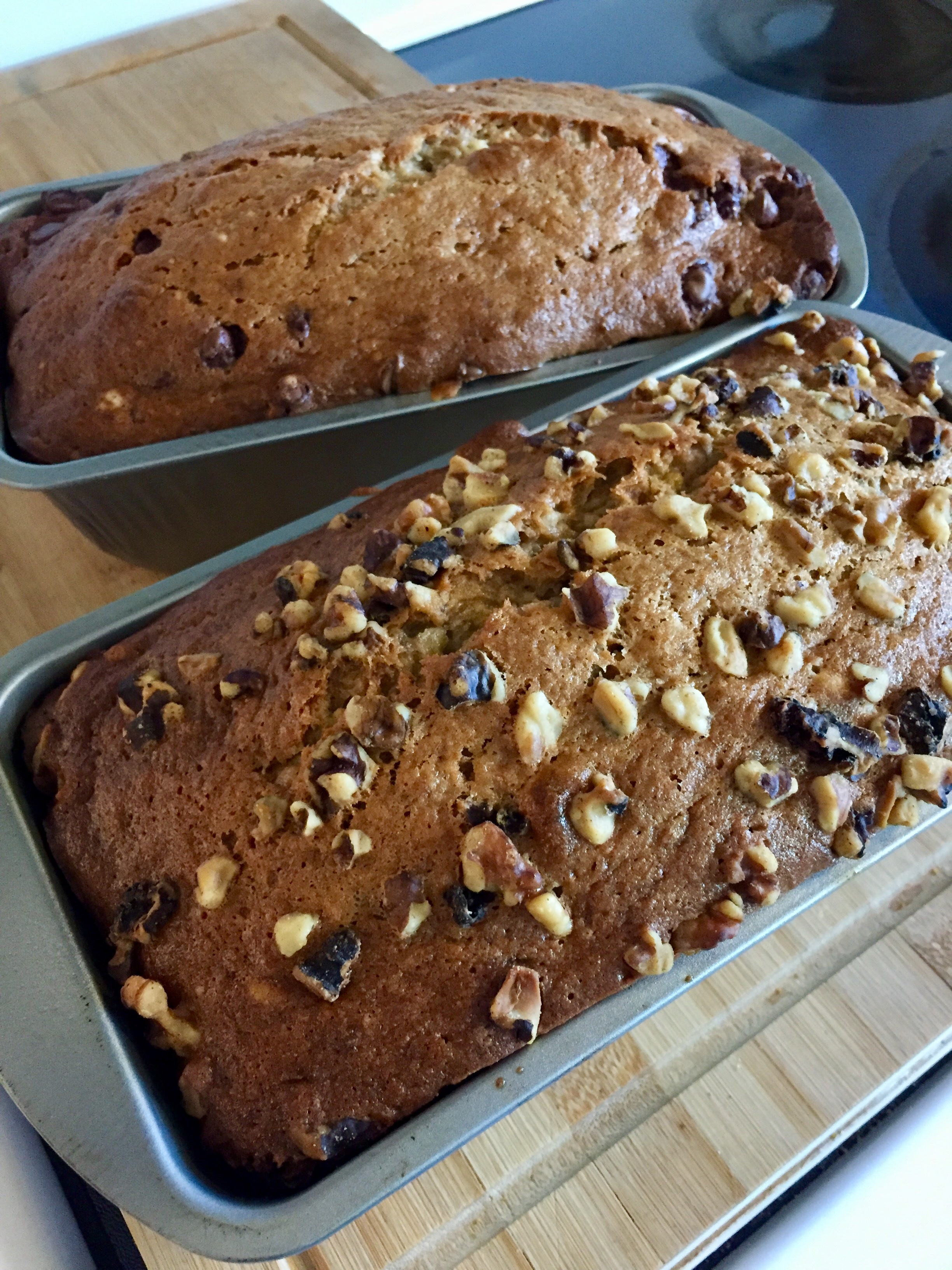 I doubled the recipe to make one with nuts and one with chocolate chips for my picky boys. It was really good, and devoured quickly.