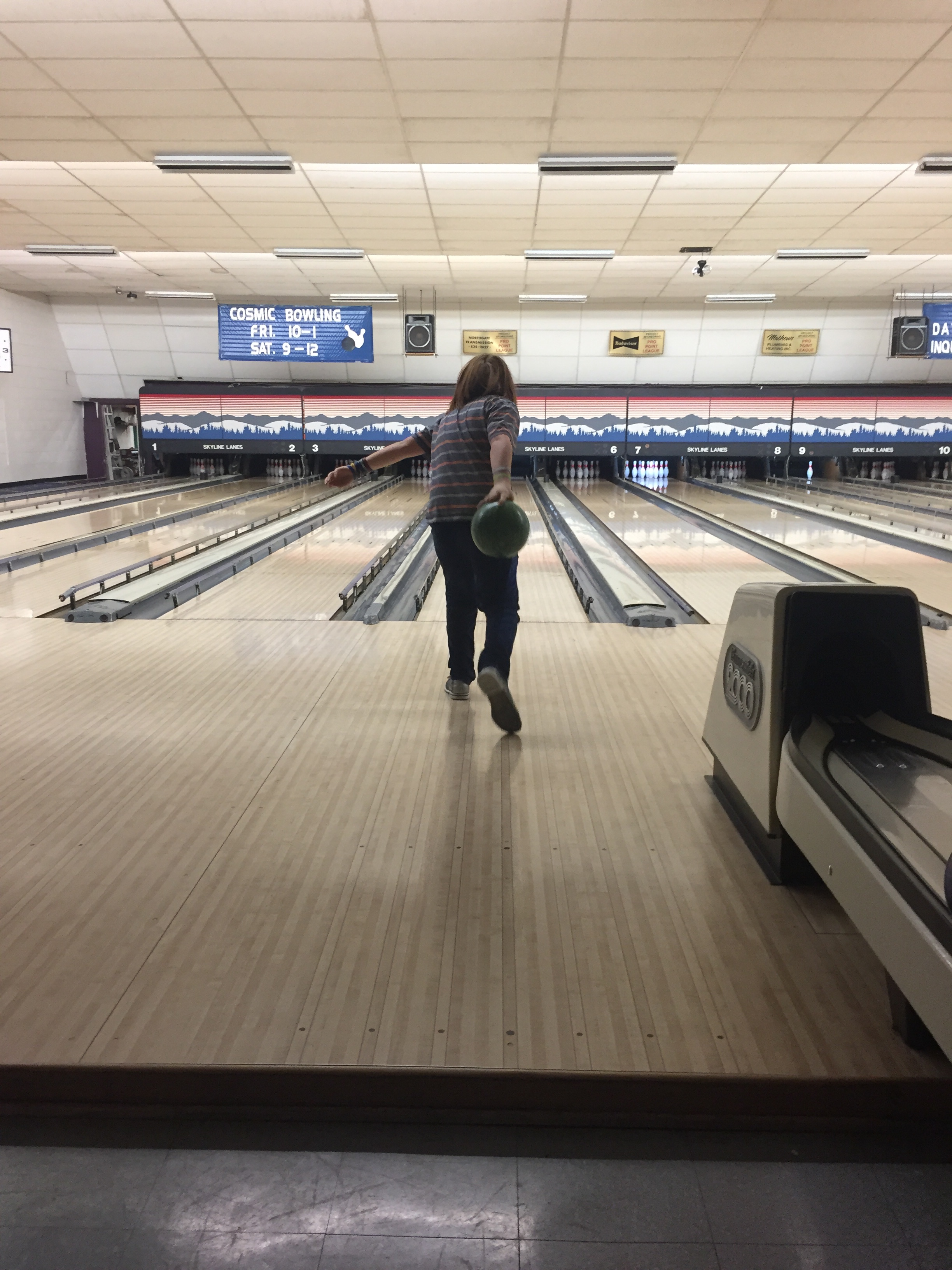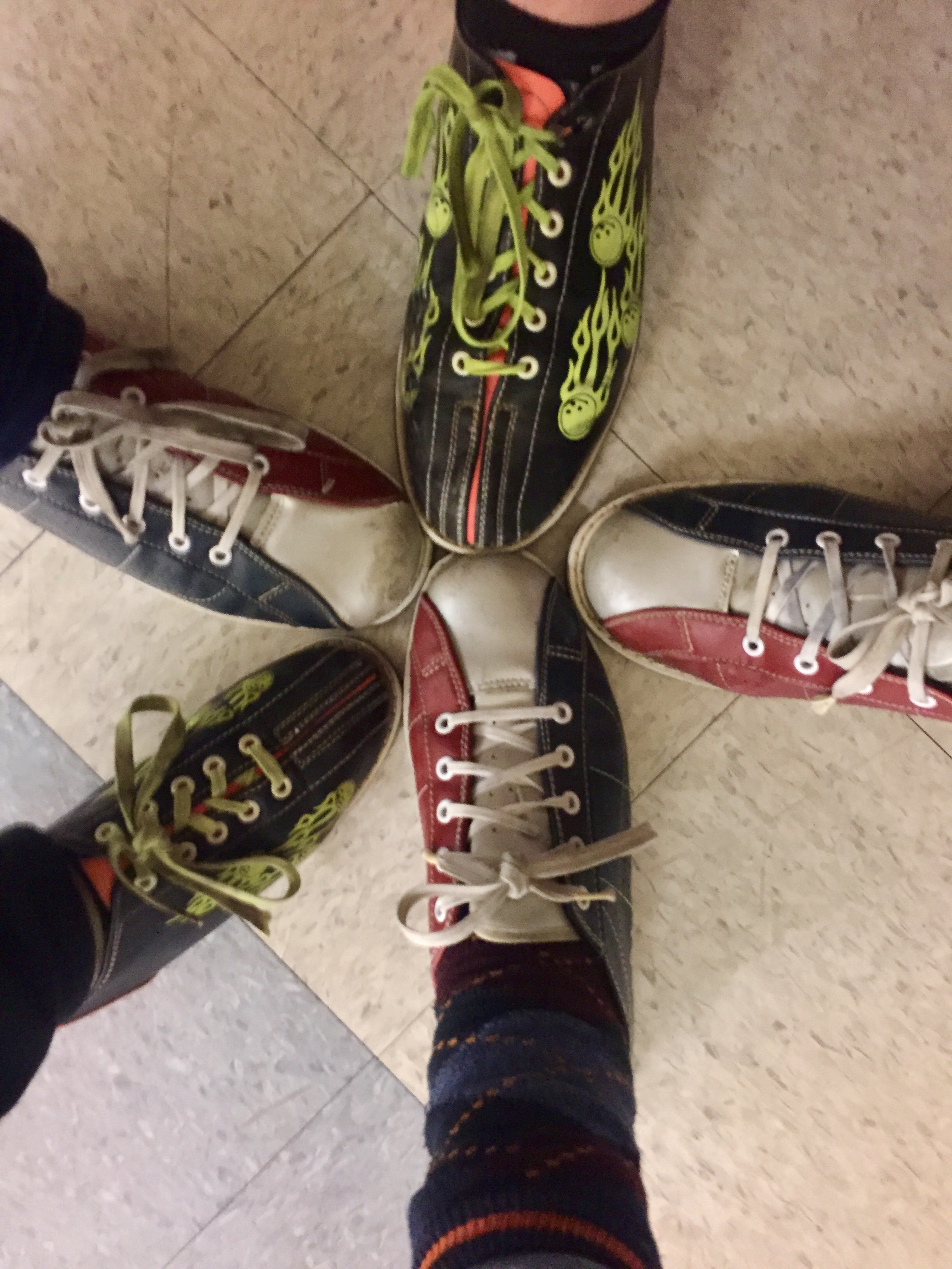 Tried some bowling tonight. Mom put on the shoes but that’s as far as she got. The choice of balls was too much, and I think she was thrown off by how heavy they were. So she just cheered from the sidelines and enjoyed her shoes, and a cheesy pretzel.