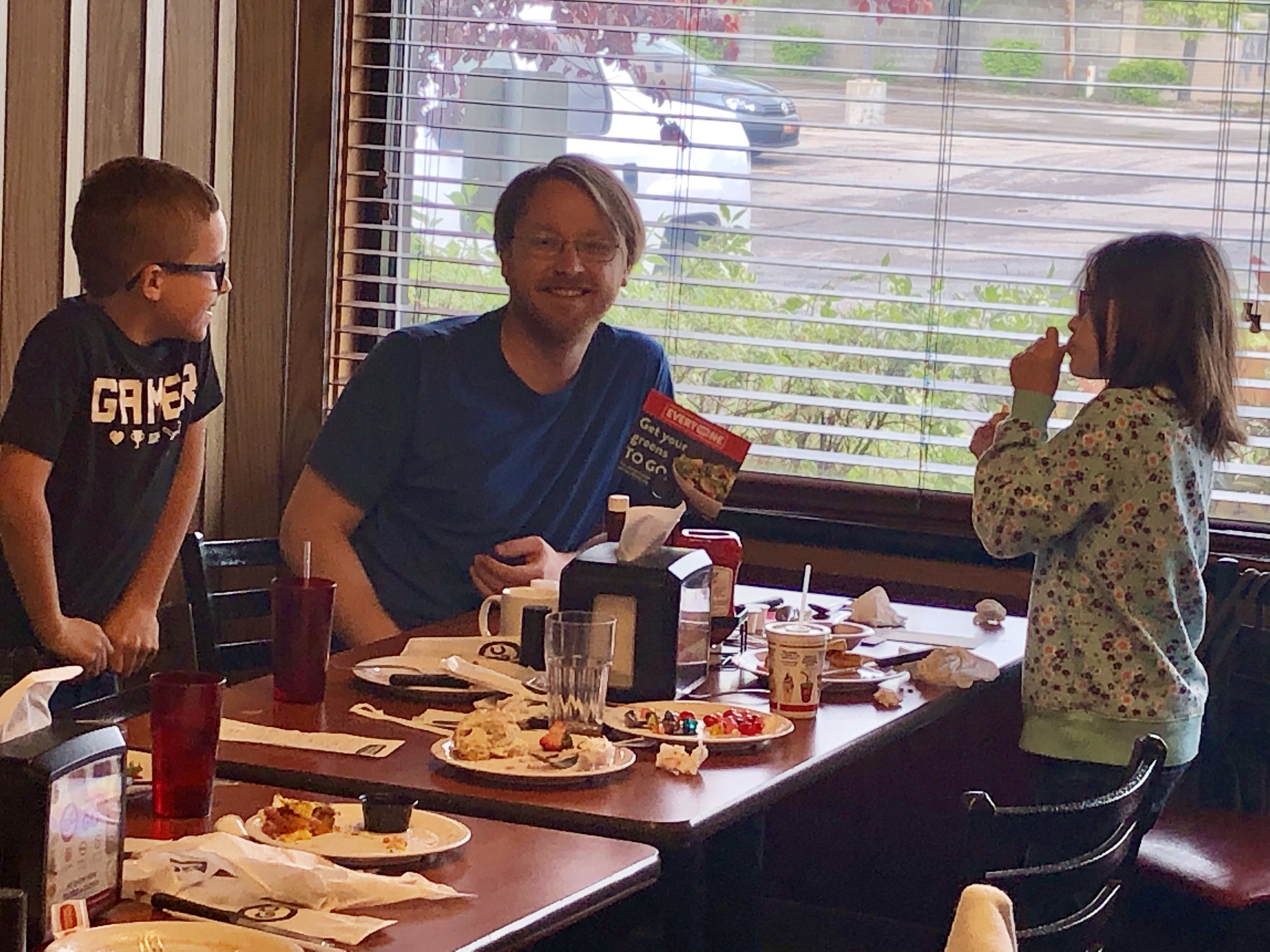 Met with all moms siblings, Brent (who looks exactly like Grandpa in pictures), Larry, Ron, Linda and Nancy who was camera shy (missing Barbara) at the Golden Corral in Salt Lake for Memorial Day. Mom was ecstatic to see them and remembered everyone. Her long term memory is intact, but she did get called out by little London (after mom asked her 3 times what her name was and how old she was), for “being forgetful” which of course mom was slightly offended and exclaimed “I’m not forgetful!” 😂 She tried to tell her Princess Diana story, mixed in with her 9/11 story to Linda, Sherry and Rita, who got to see a little bit of her confabulations.