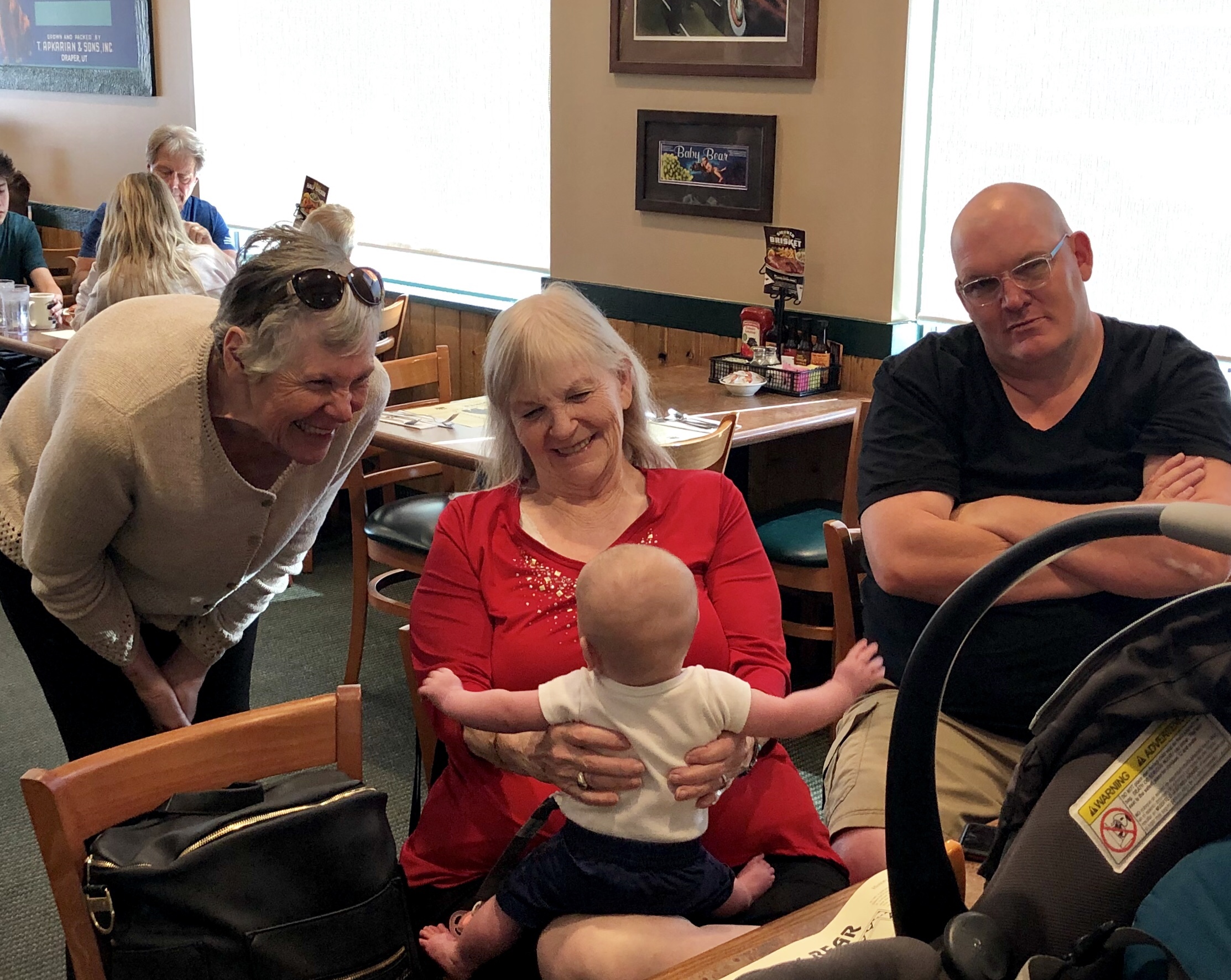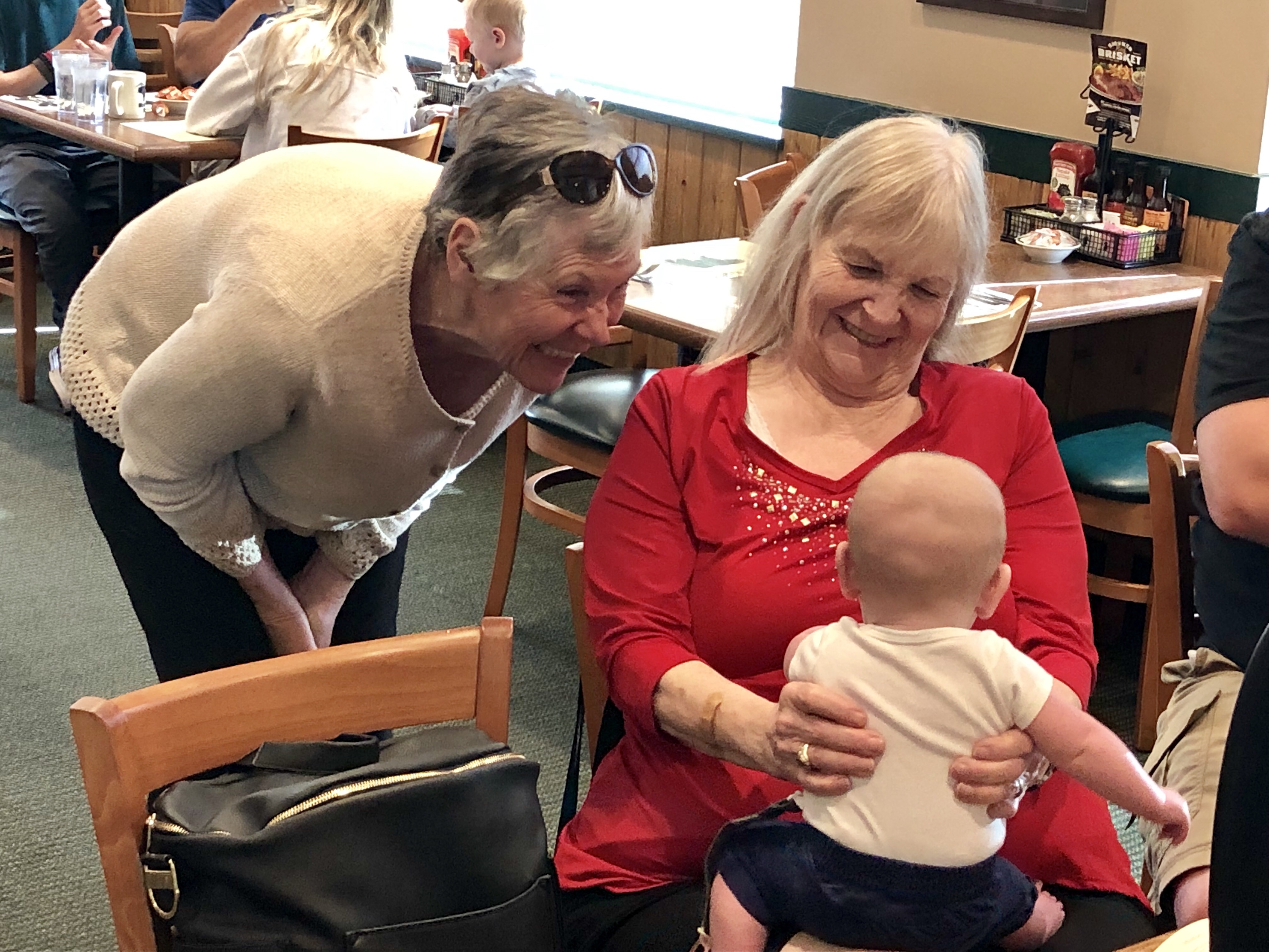 Oh how much excitement to see these littles after months of watching them grow on social media. Grandma Jo was extra happy to hold her great grand babies. Mom had a hard time wrapping her head around how she might be related to them, and was offended once when I asked her to trade seats at the restaurant so Joann could sit closer to Christina.
