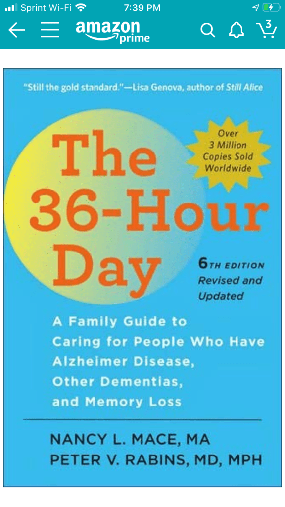 This book The 36 Hour Day should be required reading for any caregiver.