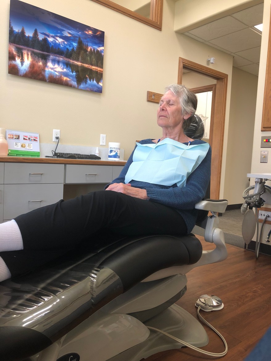 Moms right upper molar (wisdom tooth) had lost all bone structure holding it in and has been causing problems for almost a year off and on. The dentist, Dr. Marlow is very conservative and even though she’s been in at least three times for the same issue he has been hesitant to pull the tooth. But today I insisted. I know it will get to the point to where communication for her is going to be even more difficult than it already is, and she may not be able to verbalize her pain in the future. This is the first time in the dentist chair when he asked her what the problem was, that she could point to the correct tooth bothering her, which tells me it was the right thing to do.