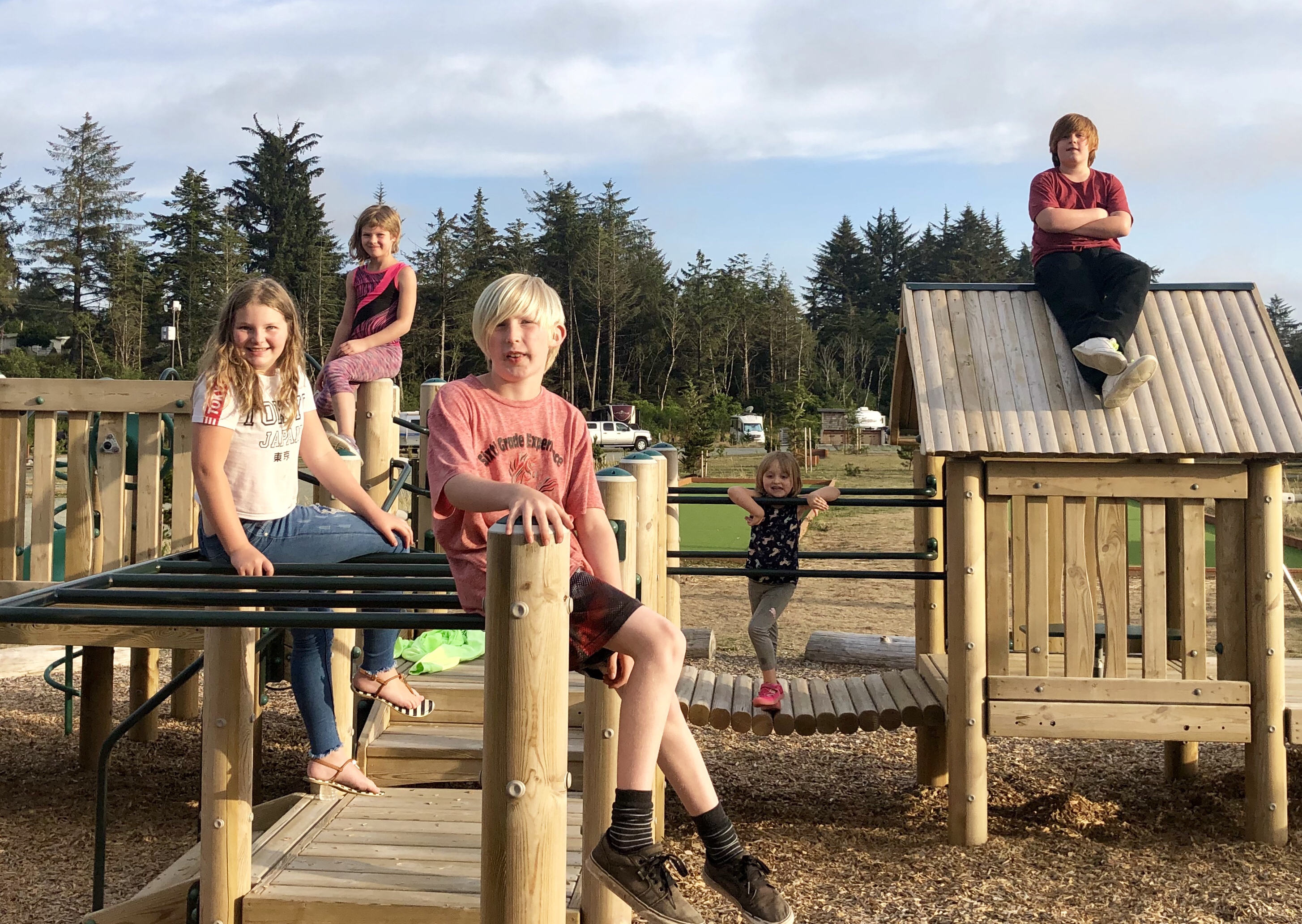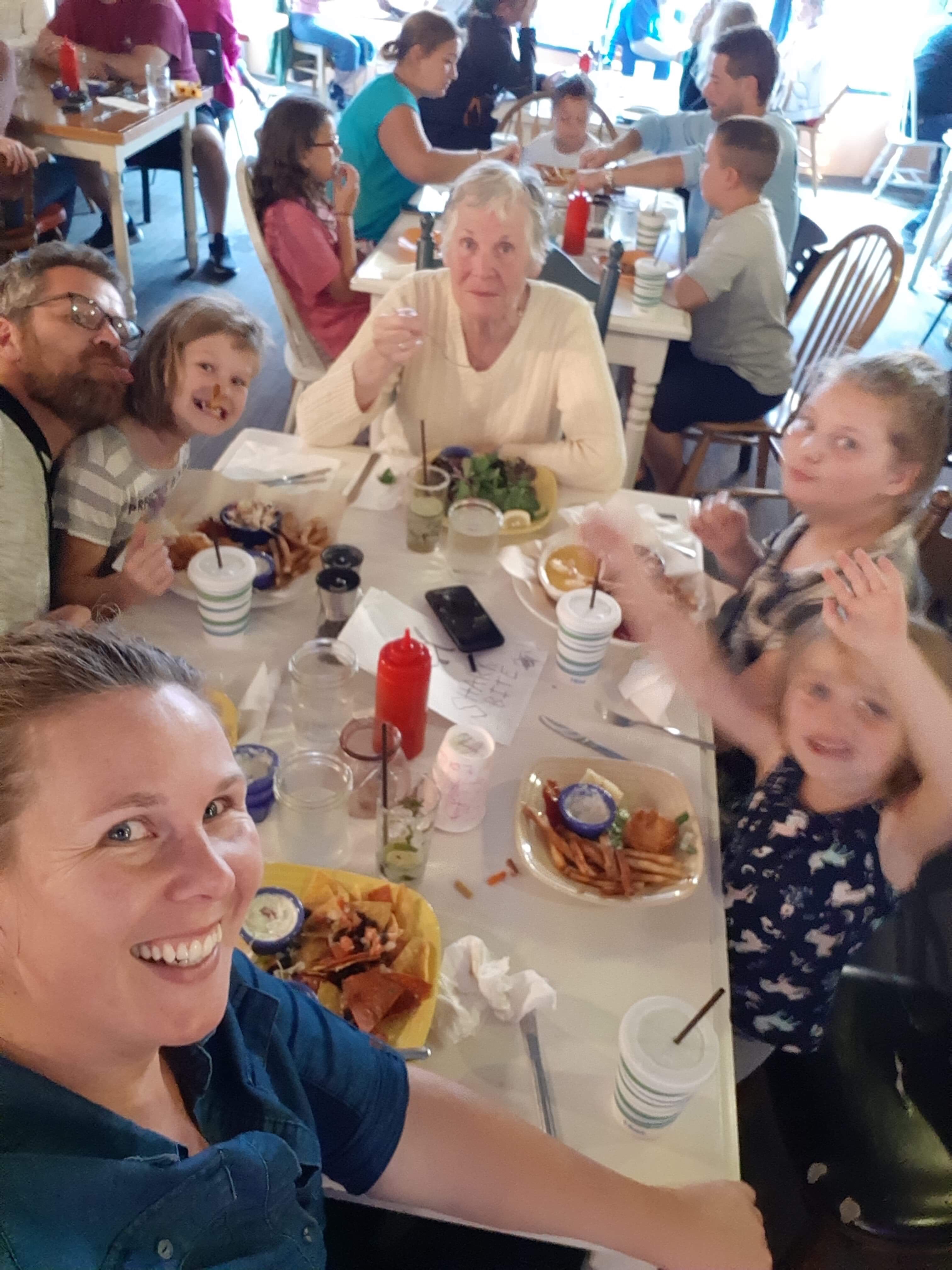Andrea and Jared took mom in for 4 nights so she could have a comfortable bed and her own room while we took a detour up to Washington to see Hannah for a couple days. We stayed at the ritziest RV park Bay Point Landing in Coos Bay OR for 3 nights, the girls stayed with us overnight in the RV and swam and played in the game room and kids den at the RV park after the boys had a sleepover at their house the night before.