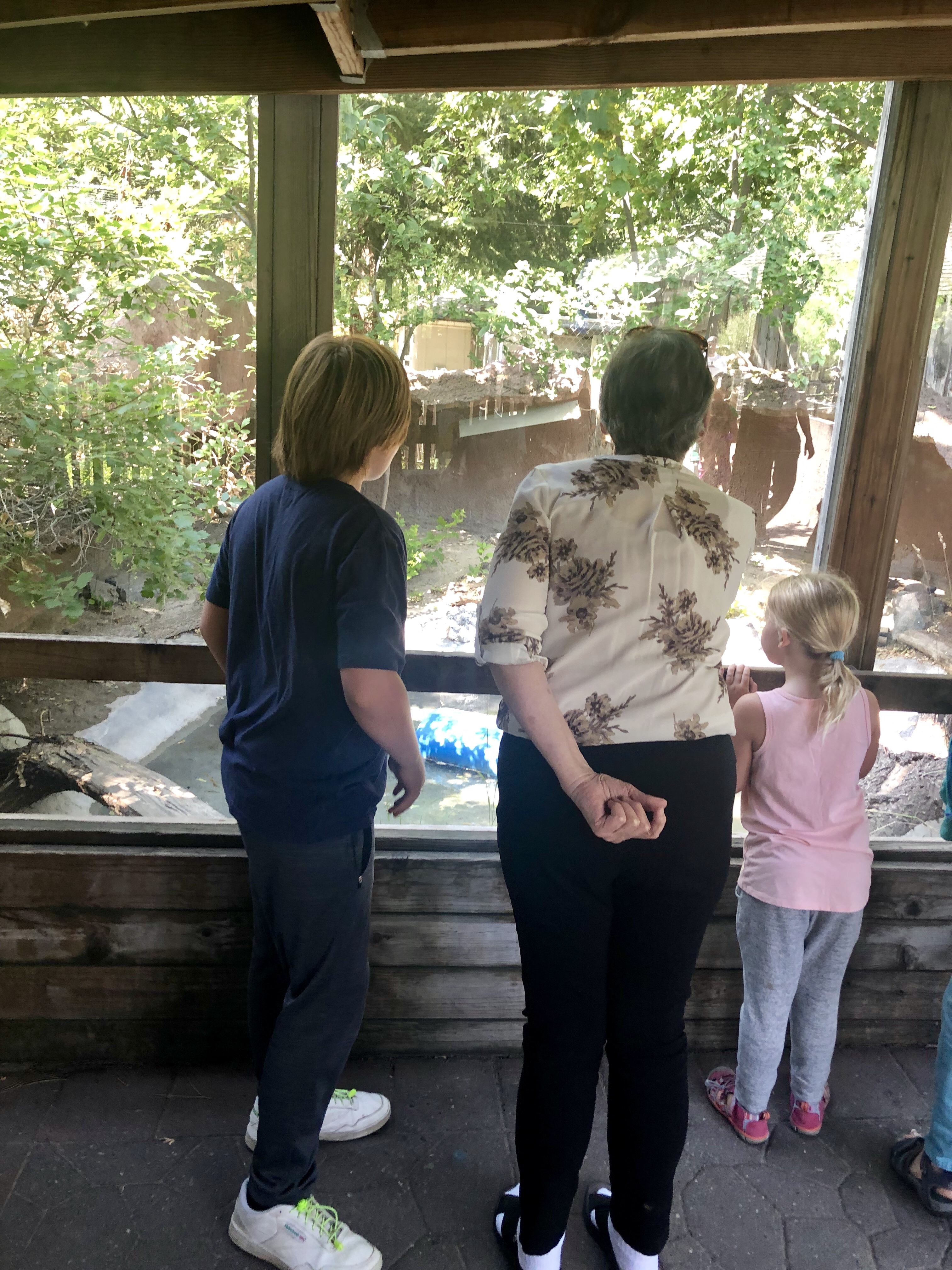 Grandma Jo bought the boys a summer pass for various city activities and the zoo has been priority for a while. Mom loved the animals but she loved the human babies in the park even more. Unfortunately she is so childlike in approaching families and strangers children, it is getting uncomfortable for parents. We have discussed maybe getting business cards that mention she has dementia. Her approach is starting and questioning is inappropriate, but she gets so much joy, I’m at a loss. My biggest wish is a dementia/daycare center where she could go and play with children. (If only I was a millionaire). Did not complain about her knees or back once. (although her bum is a sore subject)
