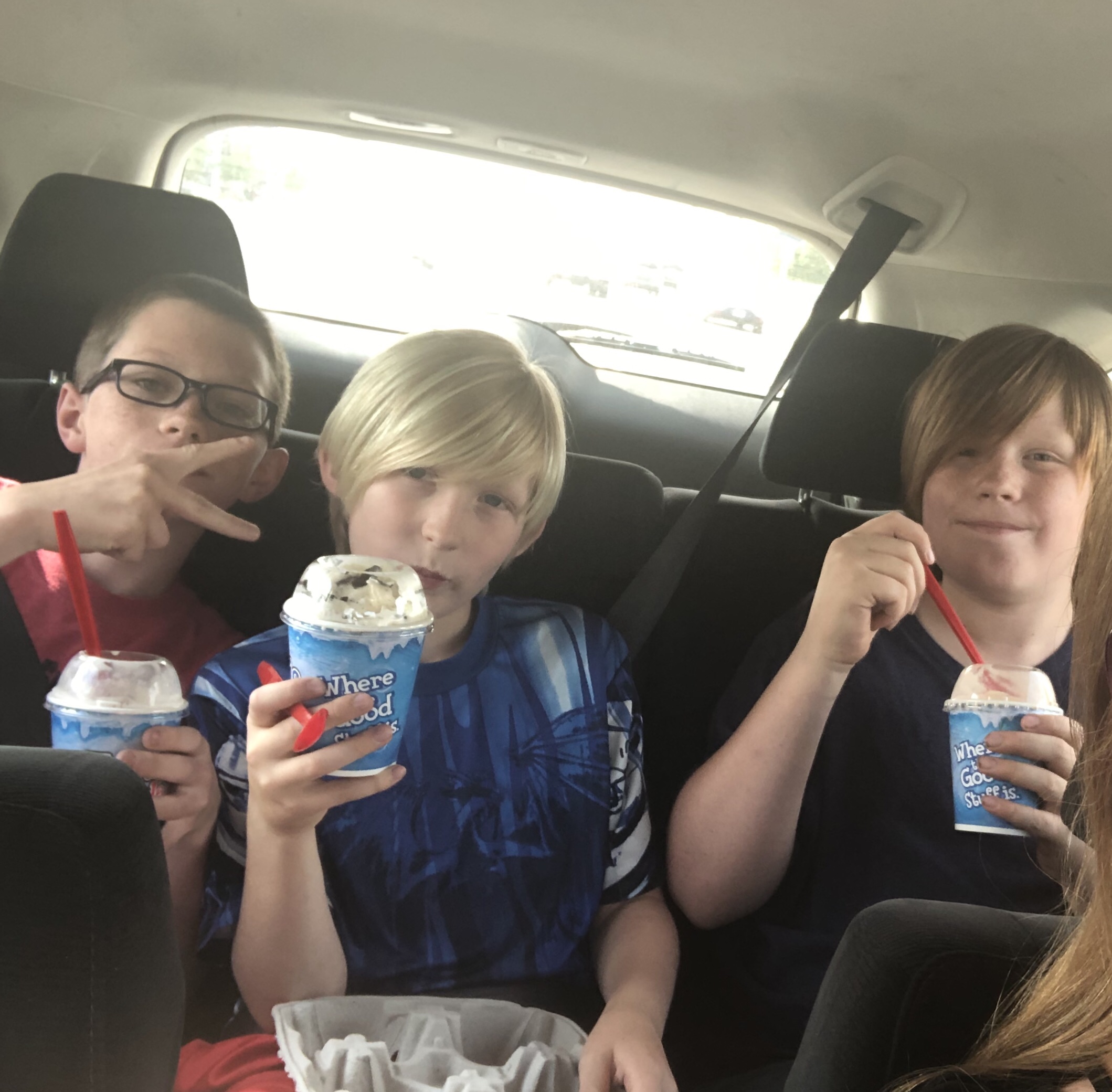 The heat called for ice cream, mom always gets whatever other people order, she cannot make her own decisions, usually I steer her to something I know she enjoys but she was very instant on the same shake the boys ate, Oreo Carmel brownies, and she ate every bite.