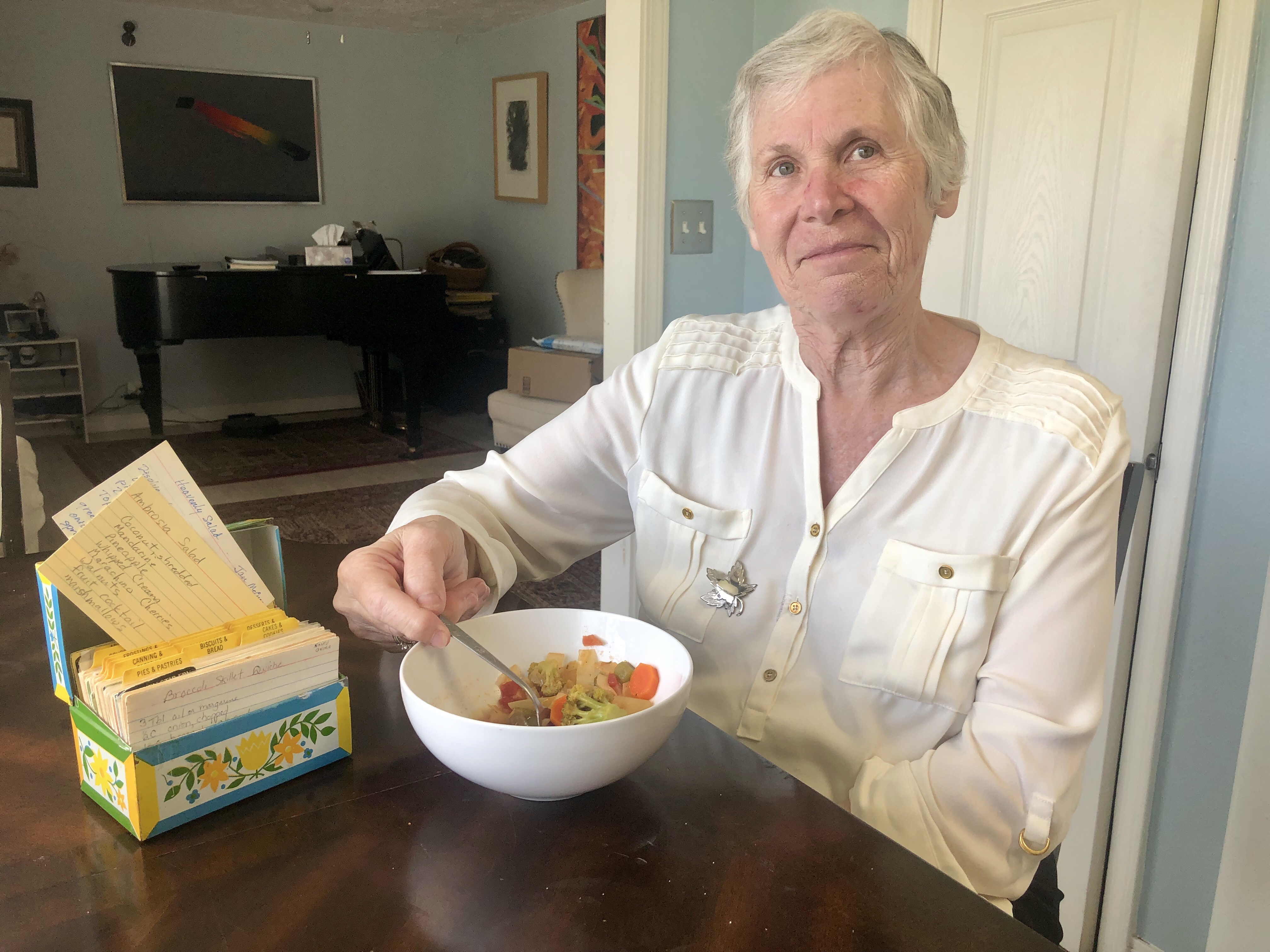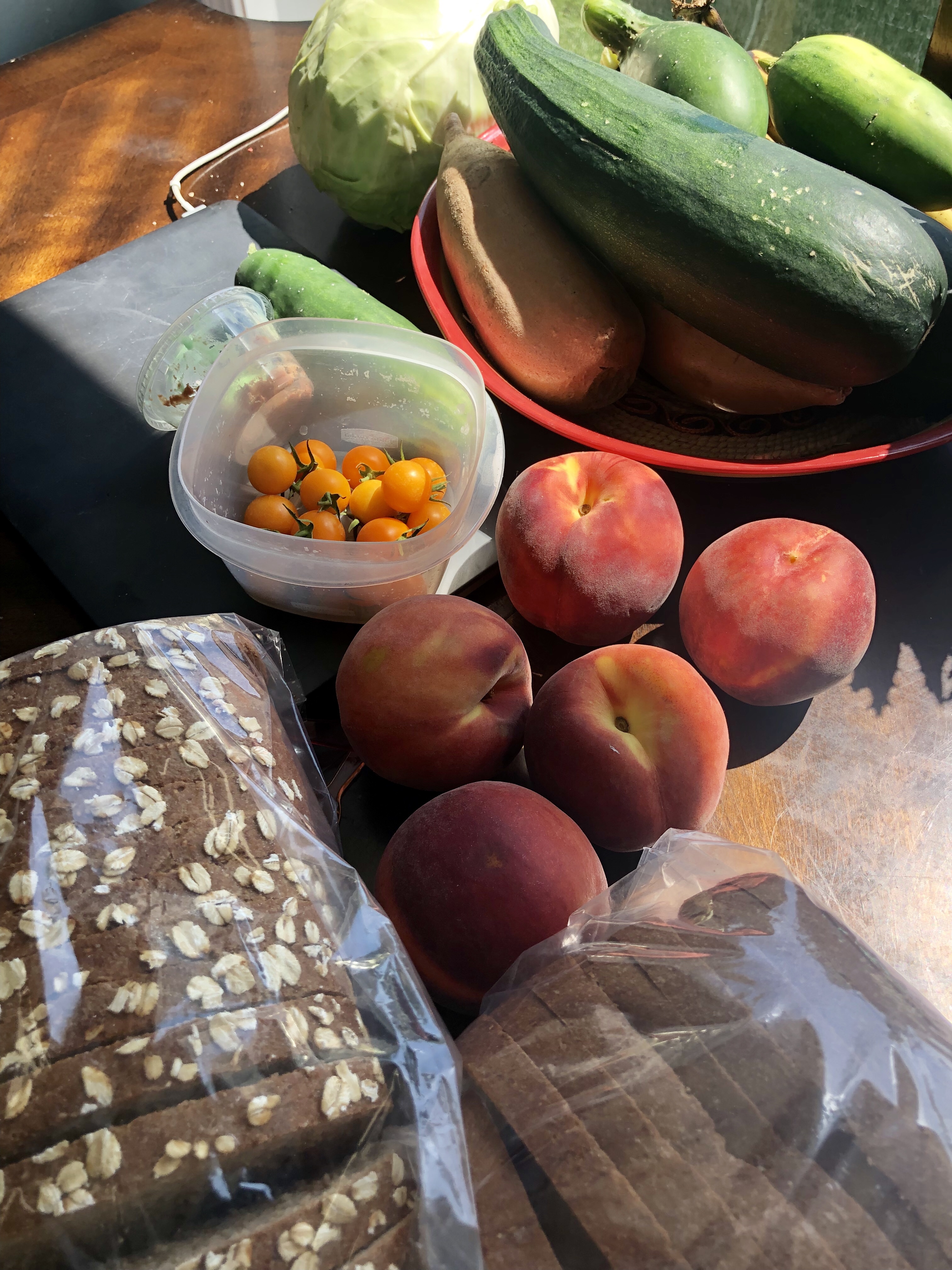 I didn’t grow peaches or cabbage. And this bread is fabulous, but mom found her “mother’s” recipe box (which was honestly hers), with a few transposed from Grandma Peggy. But every recipe she read through was “her mother’s” yesterday… and apparently so was my garden soup that I made… smile and nod, smile and nod….