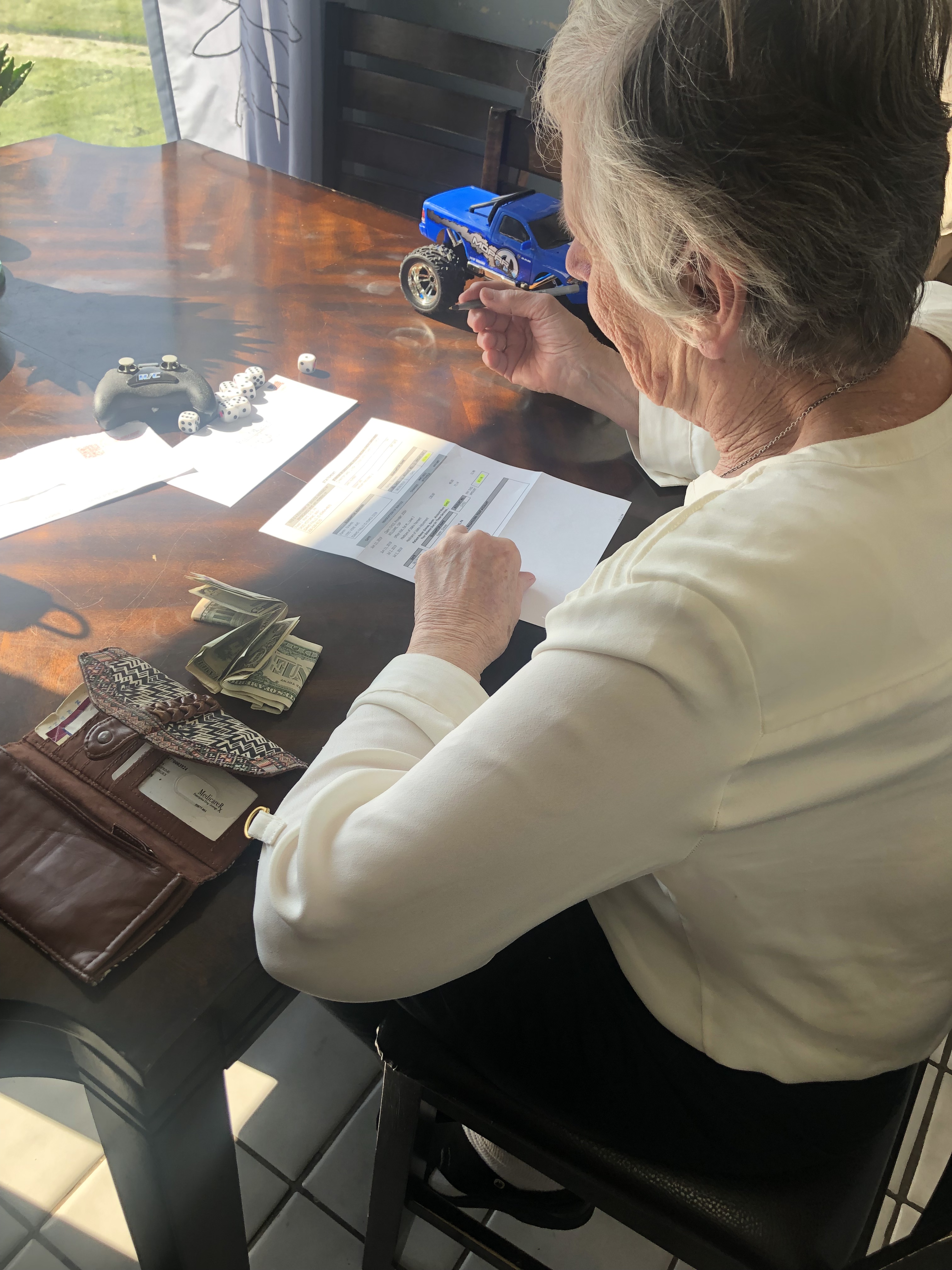So every once in a while mom picks up and goes through the mail, when there is a bill with her name on it, she knows something is supposed to happen and feels obligated to take care if it. But the follow through is difficult. Her independent nature says “I know what I’m doing and I don’t need your help” so I observe from a distance and am there when she asks for help. At the best it keeps her occupied for a moment, at the worst she gets frustrated and huffs, puffs and emits gigantic sighs.