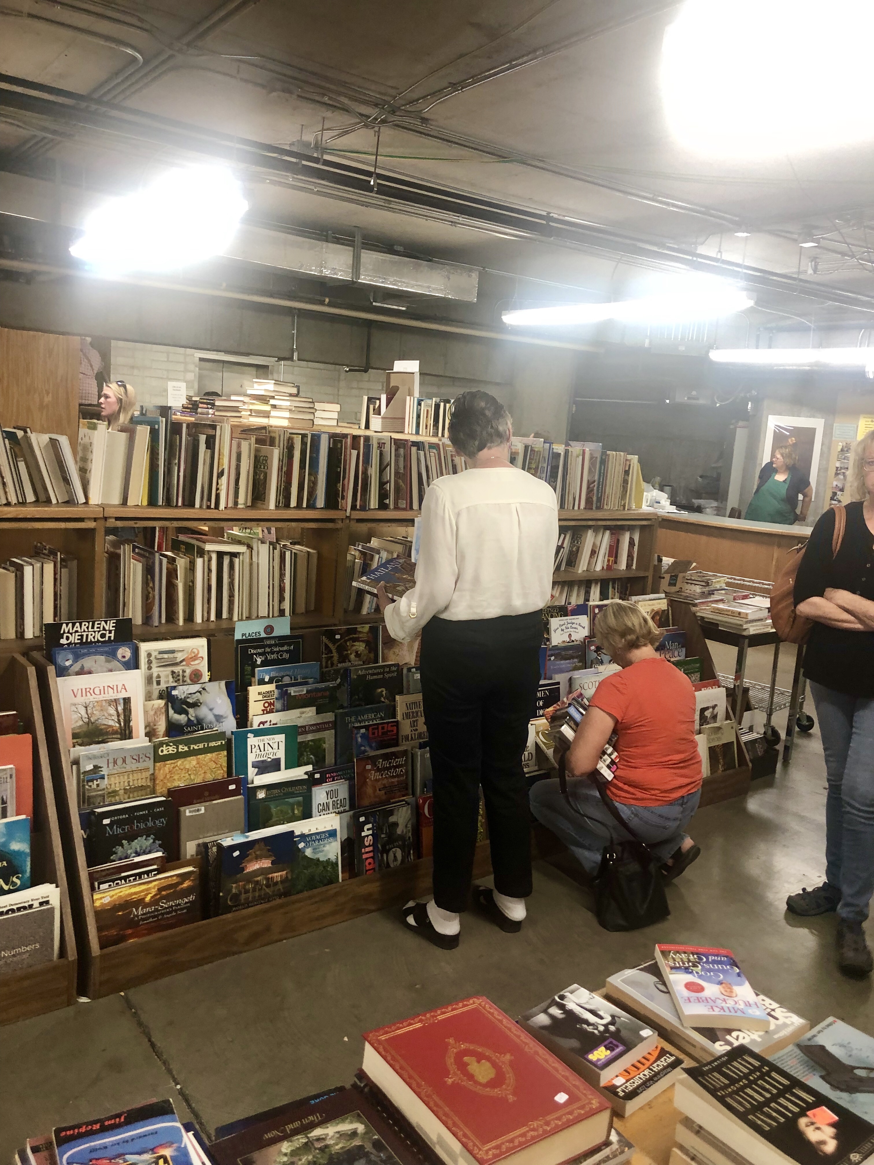 With a little prompting and some guided mimicking, she found two books, one about painting, and another fiction. Score! She also enjoys talking to strangers, much to my chagrin due to my introverted nature.