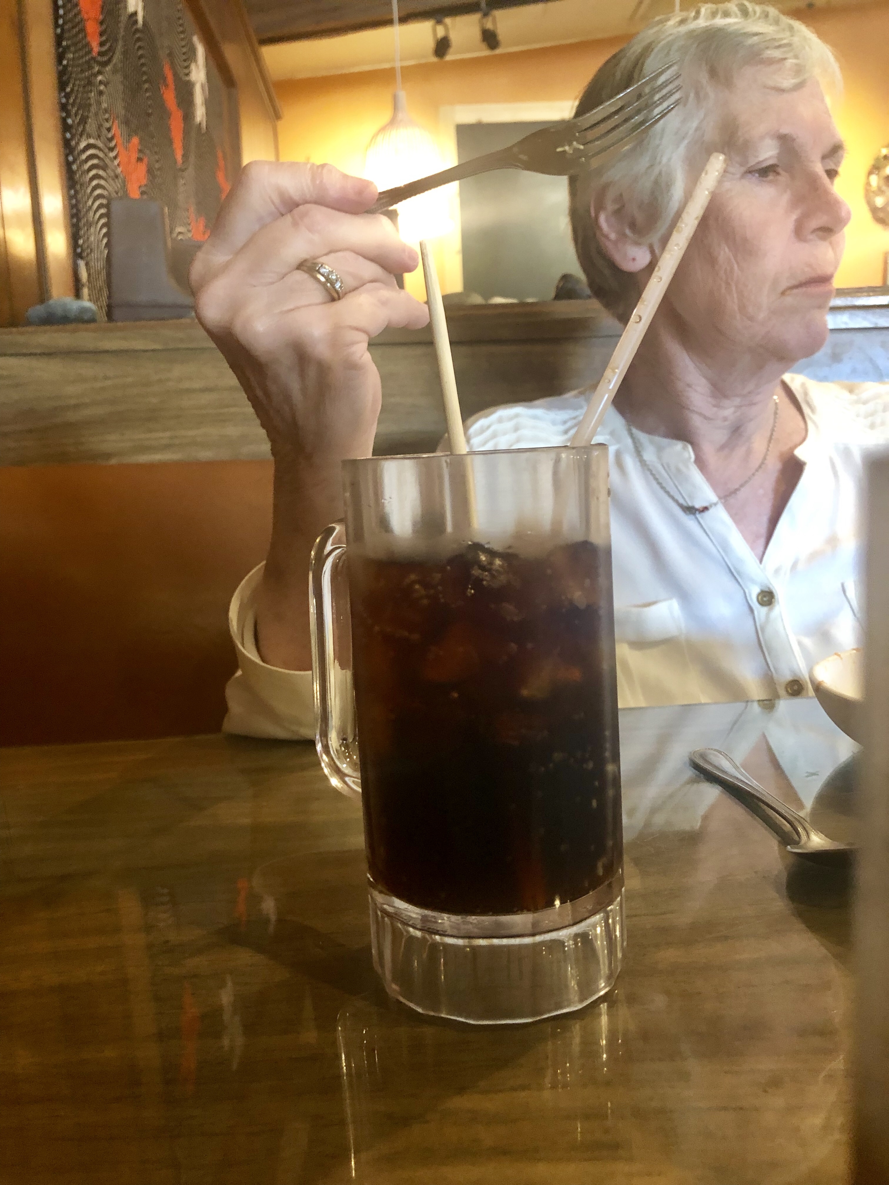 Yes, that is a chopstick in her drink. Our “normal” makes the waitress eyebrows raise. I just let it go, drawing attention to every mistake she may make just embarrass’ her. Nobody has any time for that. πŸ˜‰