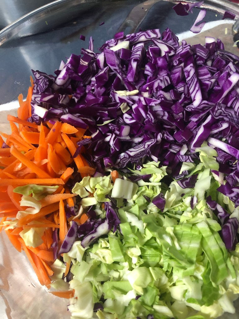 - 1/2 green & 1/4 red cabbage shredded