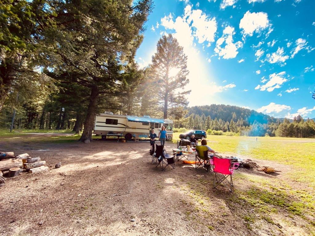 Just a quick one night trip up around Spencer area. This spot was fabulous! Wide open but surrounded by forest, and only a few other campers in the area. Although mom was ready for bed as soon as the sun set ( which was pretty early since we were in a canyon) we stayed up around the fire till 11. The Whites came up later in the day and parked their Jeep next to us. A little easy hike on some short 4-wheeling paths for mom was perfect. We also stayed behind when all the boys went to find a spot for shooting practice. This was the very first time Joe and Jack got to see REAL guns fire. They were a little impressed 😄