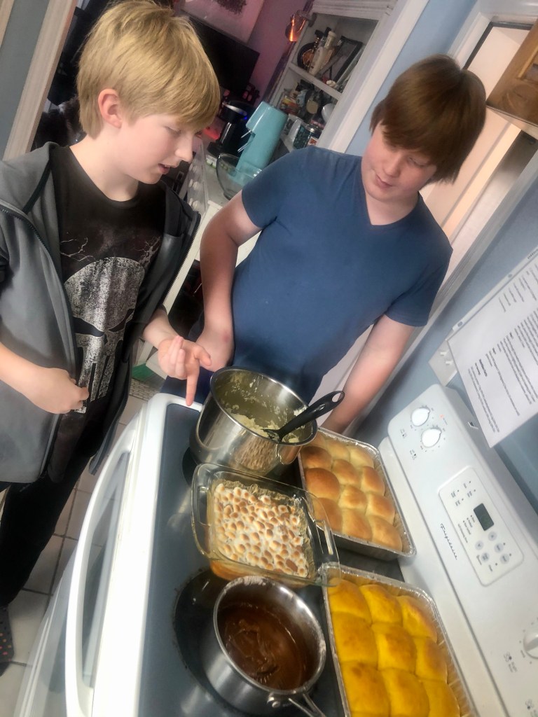 These guys helped so much with thanksgiving this year. Jack made wonderful bread rolls from scratch, and cute pudding pies. Joe helped with the potatoes and hors d’oeuvres. They are becoming well versed in the kitchen. Even helped wash dishes after.