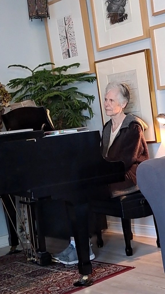 Mom had a really great day on Wednesday this week. She was up conversing, looking us in the eyes and smiling, trying to join the conversations, in her own salad speech language, attempted the piano, ate really well. Then Thursday she was in bed for almost 20 hours. I swear good days just depleat her mental reserve.