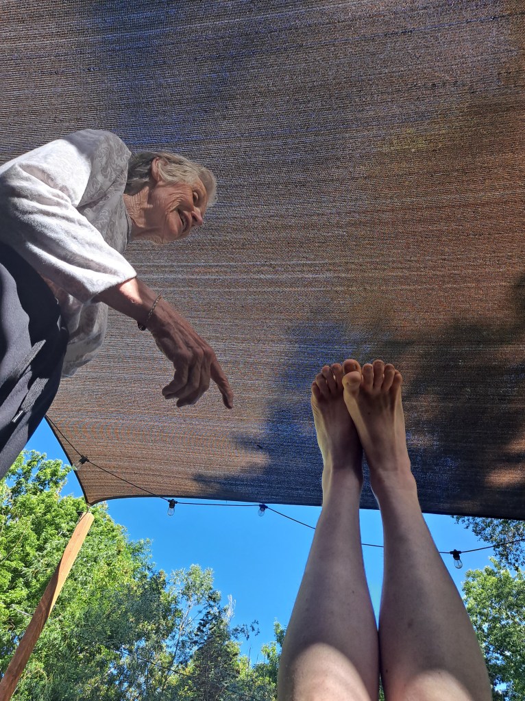 Then I had the brilliant idea to take her with me to meet Shaun and the boys at a friend’s property in Blackfoot where they had parked the RV. Jack texted they needed marshmallows so I stopped at Brolums in Shelley on the way. Left the car on air conditioning, radio, her seat belted. Cause she can never figure out how to get off the seat belt or use the door handle when I need her to, not to mention both simultaneously. I came back less then 5 minutes to an EMPTY CAR! Pure panic. I’m screaming her name, running around the parking lot to everybody I see. Have you seen a confused old lady with grey hair? Grab a bagboy to make an announcement inside, then book it to the busy street to make sure she’s not wandering in traffic.