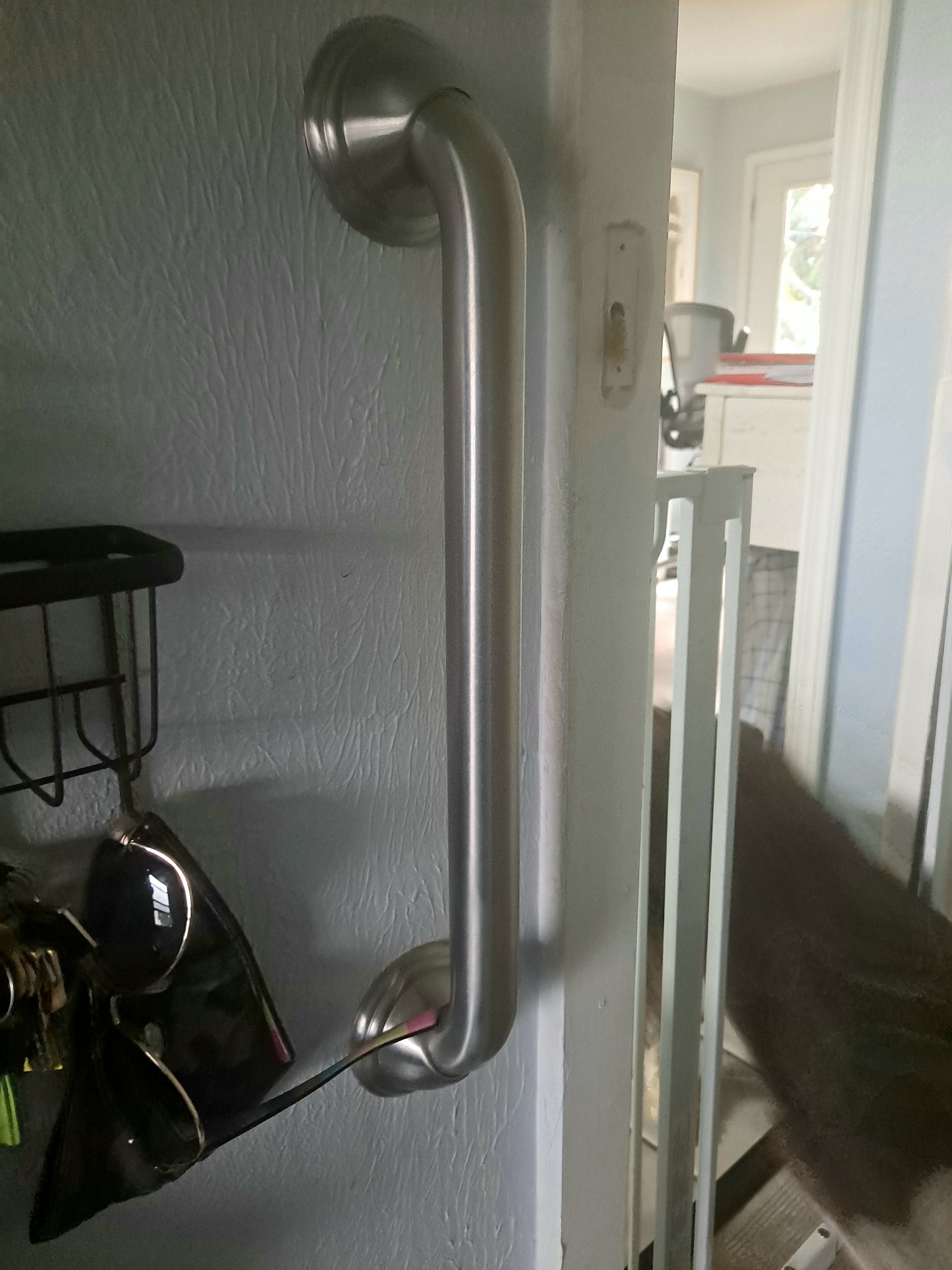 Various safety railings, handles, grips and grab bars were installed during construction. I honestly wish I had more. We just installed the toilet frame this week. I wish I had done it sooner.