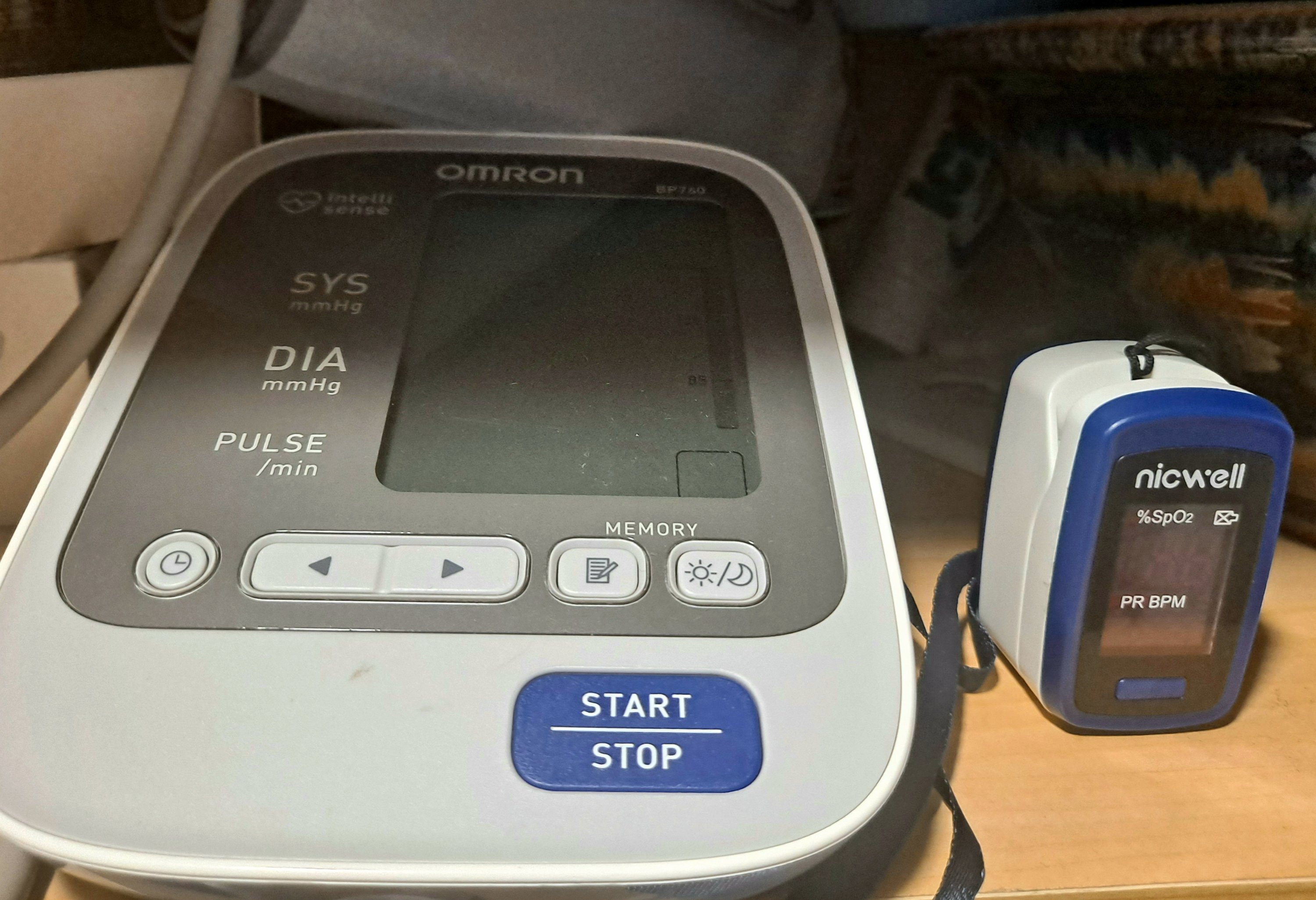 I also keep a Blood Pressure Monitor and Fingertip Pulse Oximeter Blood Oxygen Saturation Monitor handy for checking vital signs when I’m curious.