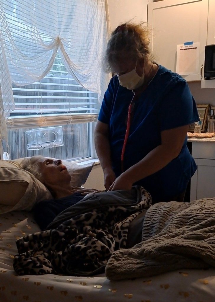 We have been so blessed with many people who are so knowledgeable and comforting. Kristy is my number one. She’s changed her schedule around and came three different times yesterday to position her, Sponge bathe and keep her from getting bedsores. Cindy our hospice nurse is coming daily, even on her normal days off.