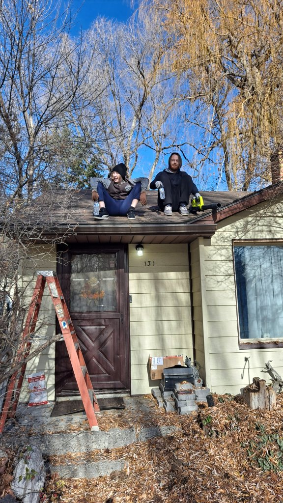 Picture of two of my kids being better humans, helping grandma clean off her roof and hang Christmas lights before it snows ❤