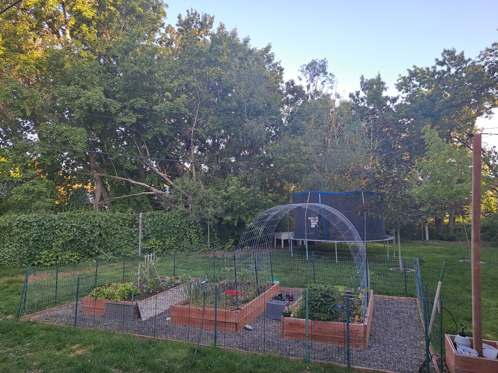 We are slowly working on the backyard and garden. I got most my plants that I grew from seed in. The boys helped me get a cattle panel trellis up for vine plants. Chickens are all alive and thriving. 2 years no deaths or disease.