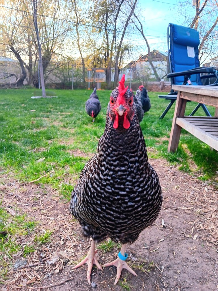 She was a cuddly chicken due to being sick her first few months of life and being carried around like a baby during that time. She never made it to the top of the pecking order and was a little bullied by those who had. But still showed courage and defiance when necessary.